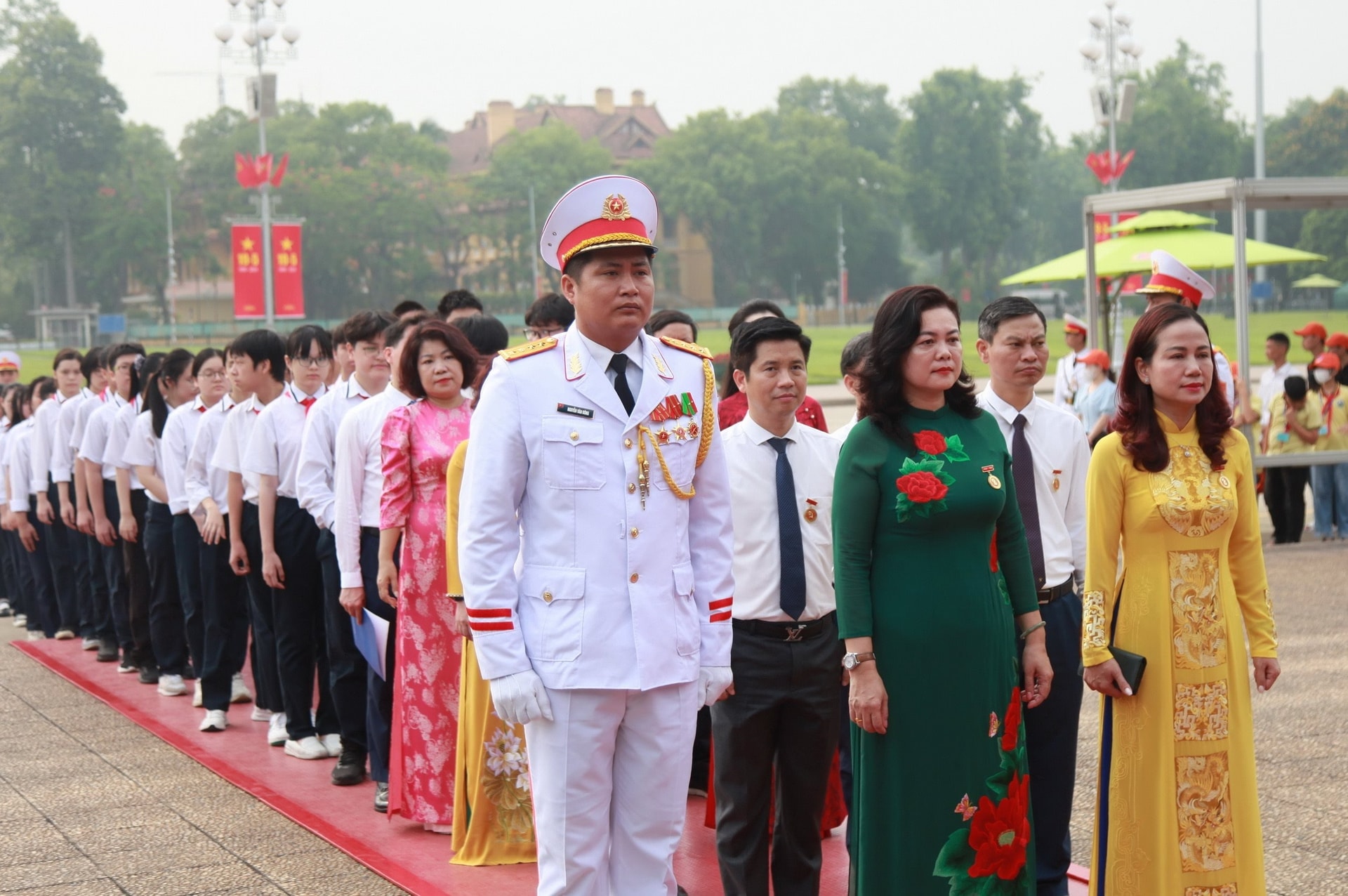 Học sinh tiêu biểu Thủ đô năm học 2024-2025 vào Lăng viếng Bác. Ảnh: Lê Nguyễn