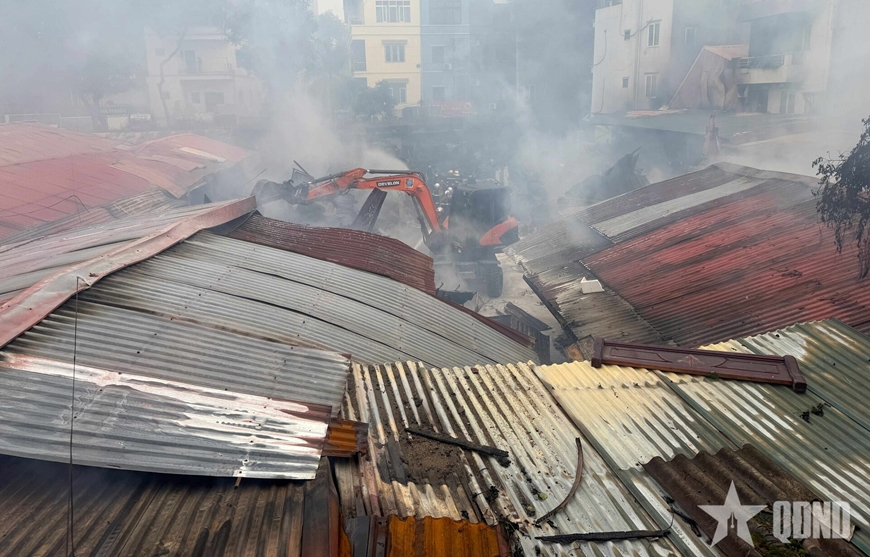 Để hỗ trợ lực lượng chữa cháy, phường Phương Liệt đã huy động máy xúc tới hiện trường để phá dỡ các cấu kiện, mở lối cho lực lượng Cảnh sát PCCC&CNCH làm nhiệm vụ. Các hộ dân cũng nhanh chóng di dời đồ đạc khỏi khu vực để hạn chế cháy lan.