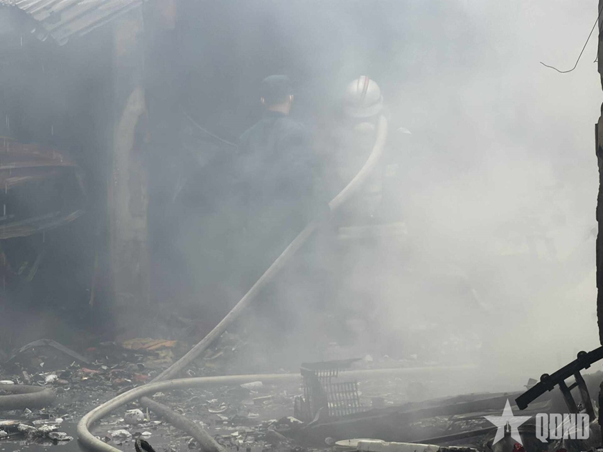 Cán bộ, chiến sĩ Phóng cháy, chữa cháy và Cứu nạn cứu hộ (PCCC&CNCH) khai thác triệt để nguồn nước tại chỗ và xung quanh khu vực. Các tổ chuyên môn cháy phun nước để chống cháy lan và tiếp cận sâu để dập tắt hoàn toàn đám cháy.