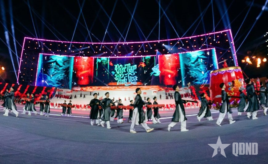 | Học viên tham gia biểu diễn tiết mục "Tinh hoa Việt Nam" tại Chương trình nghệ thuật đặc biệt “Dưới lá cờ vẻ vang của Đảng” . |