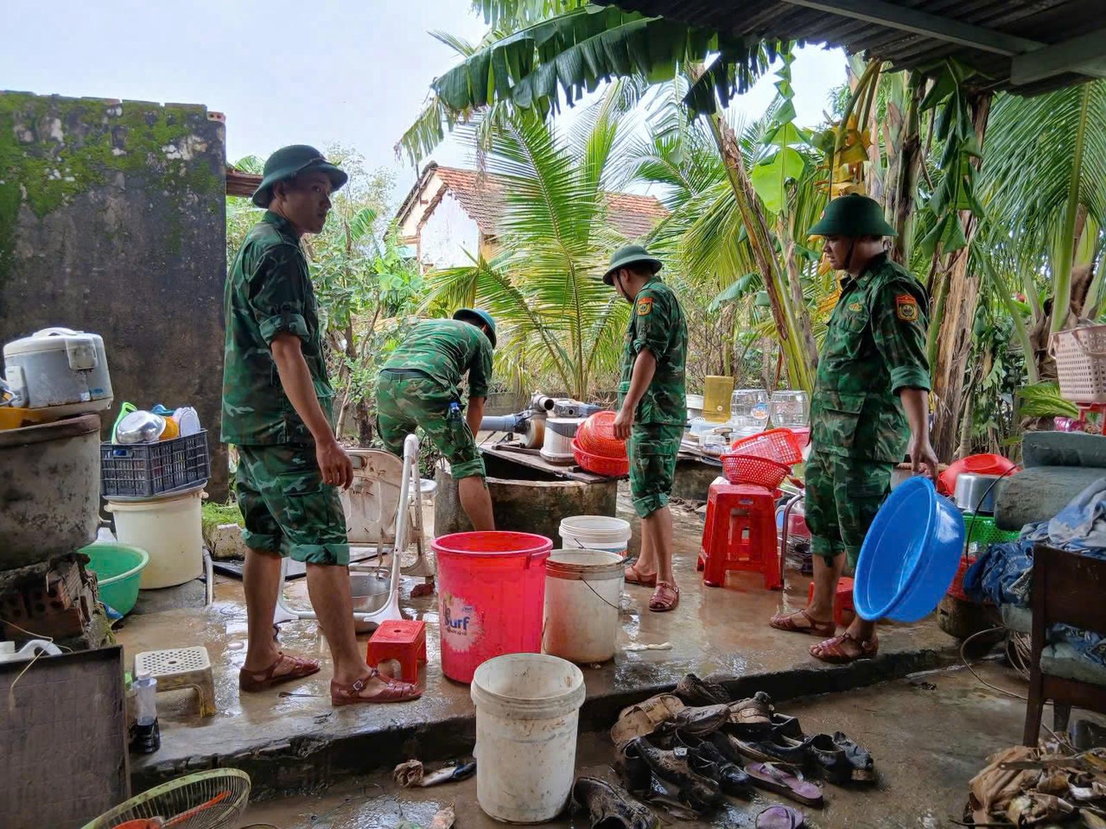 Tại phường Hòa Hiệp, Đồn Biên phòng Hòa Hiệp Nam tham gia tiếp nhận, vận chuyển nhu yếu phẩm, dọn vệ sinh các tuyến đường, nhà dân bị ngập và tổ chức tuần tra dọc bãi biển tìm kiếm người mất tích sau mưa bão.