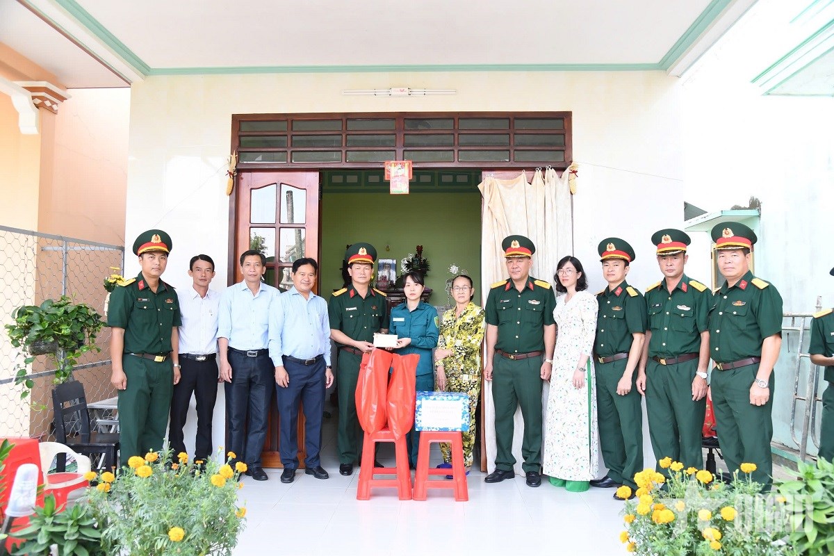 Vừa qua, Bộ CHQS tỉnh Long An tổ chức đến thăm, động viên, tặng quà gia đình 5 chiến sĩ dân quân có hoàn cảnh khó khăn trên địa bàn huyện Cần Đước (mỗi phần quà trị giá 3 triệu đồng). Nằm sâu trong con ngõ nhỏ của ấp 3, xã Phước Đông, gia đình đồng chí Nguyễn Thị Hằng, dân quân thường trực Ban CHQS xã Phước Đông có hoàn cảnh đặc biệt khó khăn. Ba mất sớm, mẹ đau ốm thường xuyên nên cuộc sống gia đình phụ thuộc vào phần phụ cấp dân quân của Hằng và hơn hai sào ruộng của gia đình cho thuê. Hằng ngày, chị dậy từ sớm lo toan công việc gia đình để kịp tới cơ quan làm việc đúng giờ. Nắm bắt được hoàn cảnh của dân quân Nguyễn Thị Hằng, Bộ CHQS tỉnh Long An phối hợp với Huyện ủy, UBND huyện Cần Đước đến thăm, tặng quà, hỗ trợ kinh phí, động viên gia đình vươn lên trong cuộc sống.