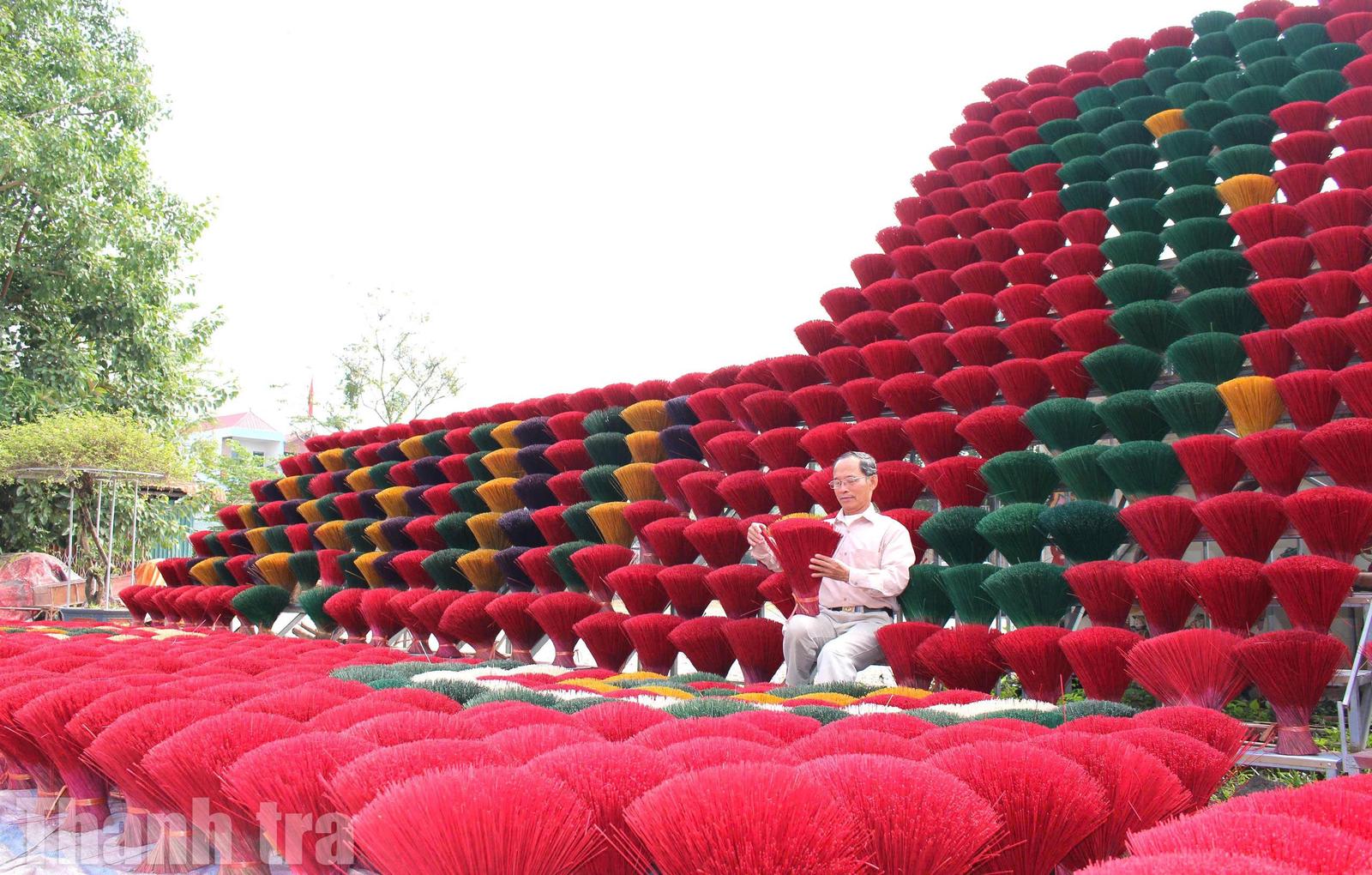Dạo quanh điểm du lịch làng nghề những ngày này, không khó để bắt gặp những đoàn khách từ Tây Âu, Nhật Bản, Hàn Quốc, Trung Quốc đang thích thú check-in bên những “đóa hoa” tăm hương đỏ rực.