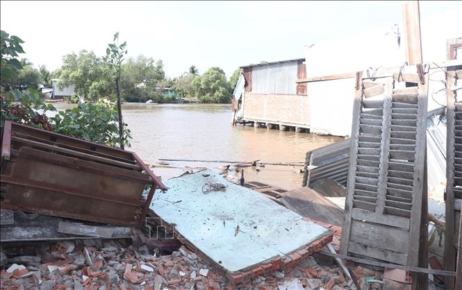Vụ sạt lở với chiều dài gần 30m, chiều sâu hơn 10m gây thiệt hại hoàn toàn 4 căn nhà xuống sông và có 2 căn nhà bị ảnh hưởng bắt buộc phải di dời, ước thiệt hại về tài sản khoảng 900 triệu đồng, không thiệt hại về người.
