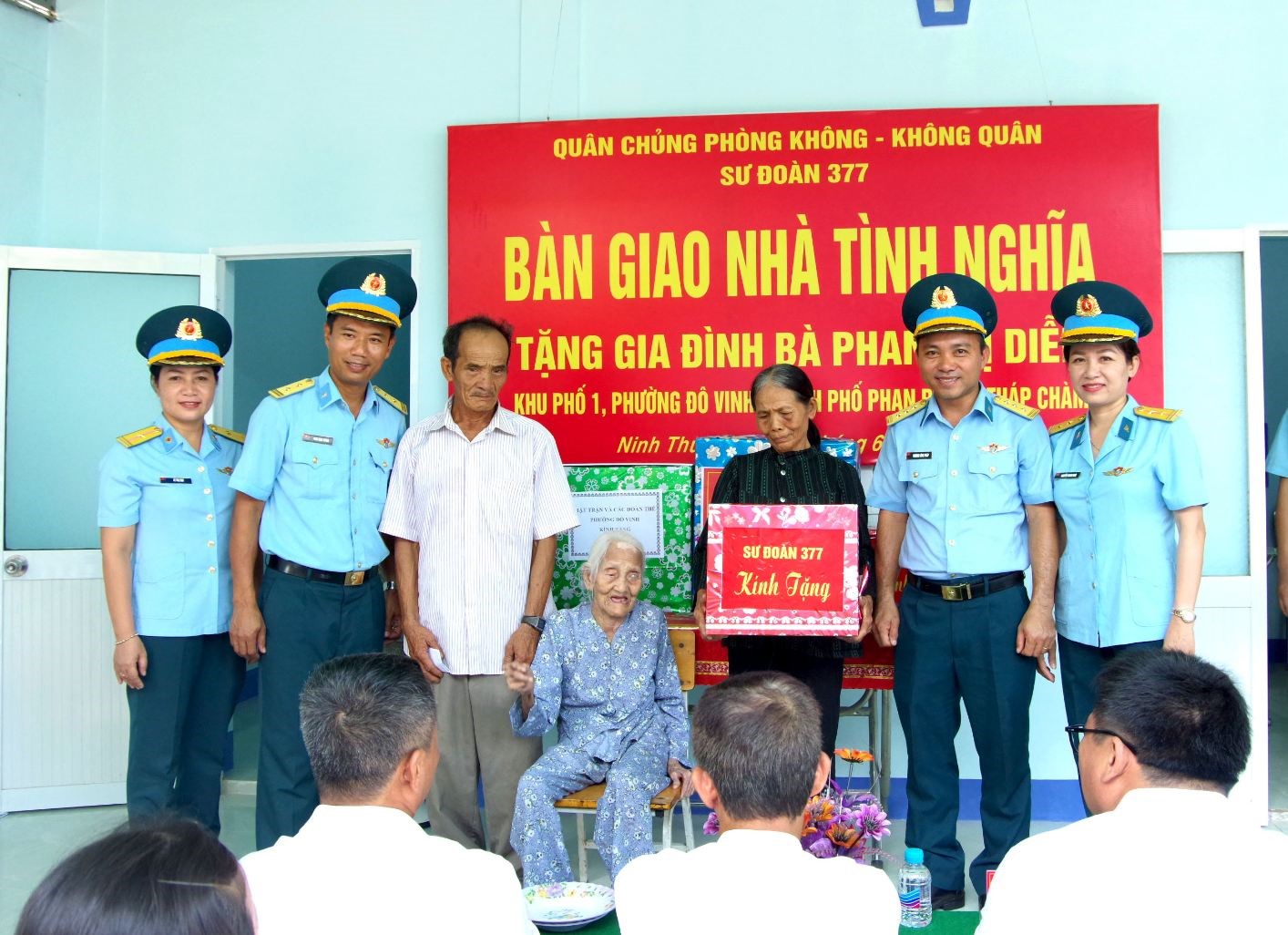 Sáng 17-6, Sư đoàn 377, Quân chủng Phòng không - Không quân đã phối hợp với cấp ủy, chính quyền địa phương phường Đô Vinh, thành phố Phan Rang - Tháp Chàm, tỉnh Ninh Thuận (nay là tỉnh Khánh Hòa) tổ chức Lễ khánh thành và bàn giao “Nhà tình nghĩa” cho gia đình bà Phan Thị Diễn có hoàn cảnh đặc biệt khó khăn trên địa bàn.