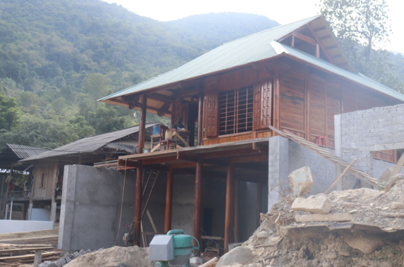 Khi cuộc sống dần ổn định, nhiều hộ dân ở bản Ta Đo đã bắt tay vào xây dựng lại nhà ở kiên cố. Việc bố trí, sắp xếp lại khu dân cư được chính quyền xã hướng dẫn chặt chẽ, hạn chế tối đa nguy cơ sạt lở khi mưa lũ tái diễn. Những ngày này, gia đình anh Vì Văn Khoa đang gấp rút hoàn thiện ngôi nhà mới. Ngôi nhà sàn bằng gỗ kiên cố được dựng trên nền đất cao, chắc chắn, thay thế cho căn nhà cũ đã bị lũ cuốn trôi. Anh Khoa chia sẻ: “Cùng với sự hỗ trợ của nhà nước, chính quyền xã và các mạnh thường quân, tôi vay mượn thêm khoảng 200 triệu đồng để làm lại nhà. Mong muốn lớn nhất là Tết này cả gia đình được đón xuân trong ngôi nhà mới, yên tâm làm ăn, không còn lo lắng mỗi khi mưa lớn”. Cách đó không xa, vợ chồng anh Moong Văn Phay và chị Cụt Thị Nàng cũng đang phấn khởi khi ngôi nhà xây kiên cố sắp hoàn thành. Trong đợt mưa lũ cuối tháng 7-2025, ngôi nhà của gia đình anh chị bị lũ cuốn trôi hoàn toàn. “Mất mát thì nhiều, nhưng nhờ sự động viên, giúp đỡ của chính quyền xã, của bộ đội và bà con trong bản, vợ chồng tôi có thêm niềm tin để gây dựng lại cuộc sống”, anh Phay xúc động nói.