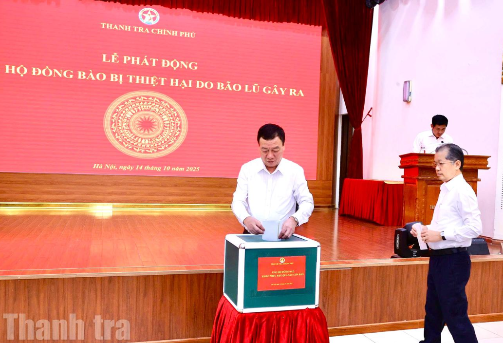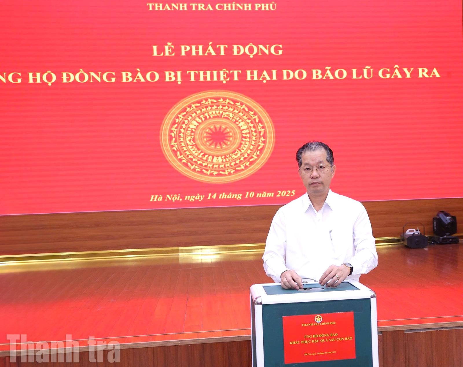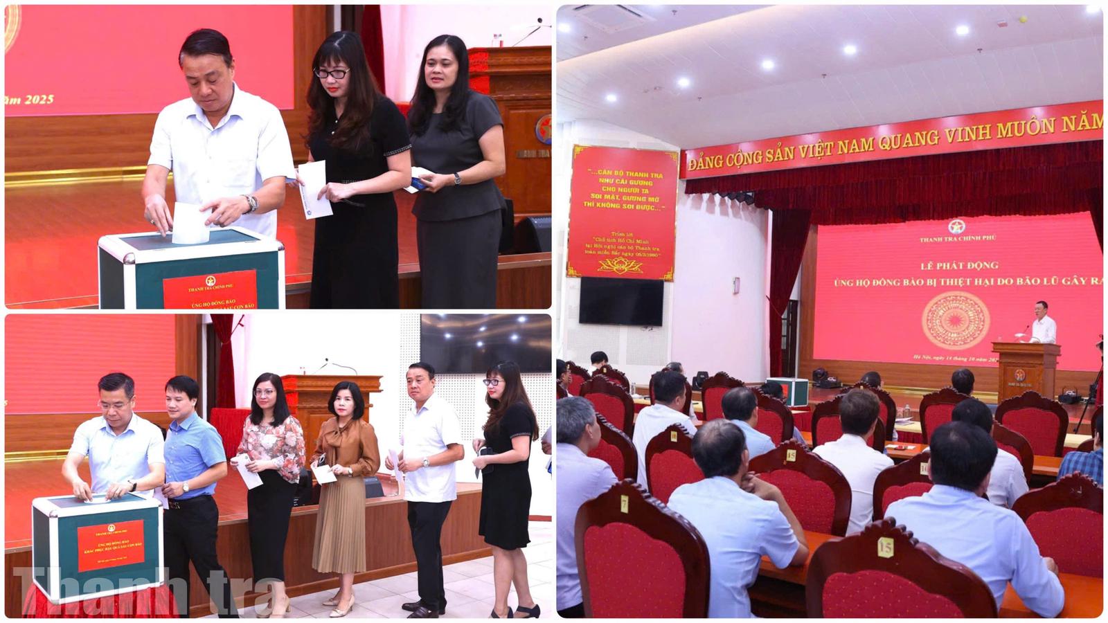 Hưởng ứng lời kêu gọi của Đảng, Nhà nước và Ủy ban Trung ương Mặt trận Tổ quốc Việt Nam, sáng 14/10, Thanh tra Chính phủ tổ chức Lễ phát động quyên góp ủng hộ đồng bào bị thiệt hại nặng nề do bão lũ.