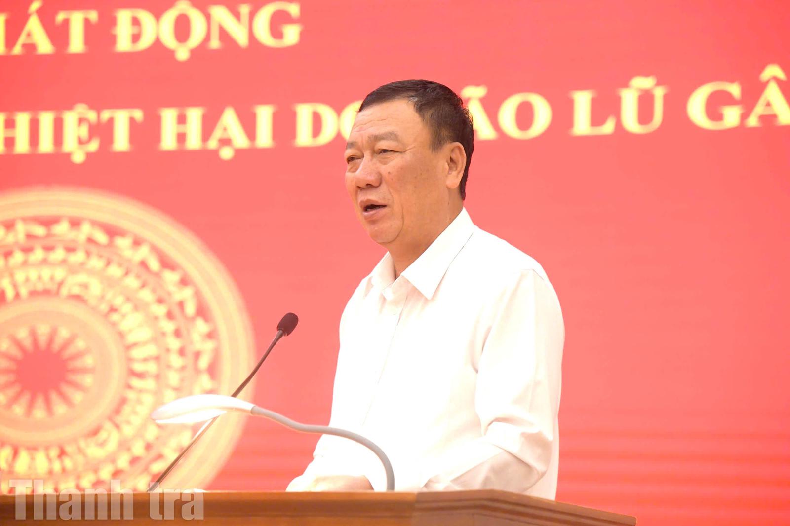 Tổng Thanh tra Chính phủ Đoàn Hồng Phong phát động, kêu gọi mỗi cán bộ, công chức, viên chức, người lao động ủng hộ đồng bào bị ảnh hưởng bởi bão lũ. Ảnh: Huy Trần