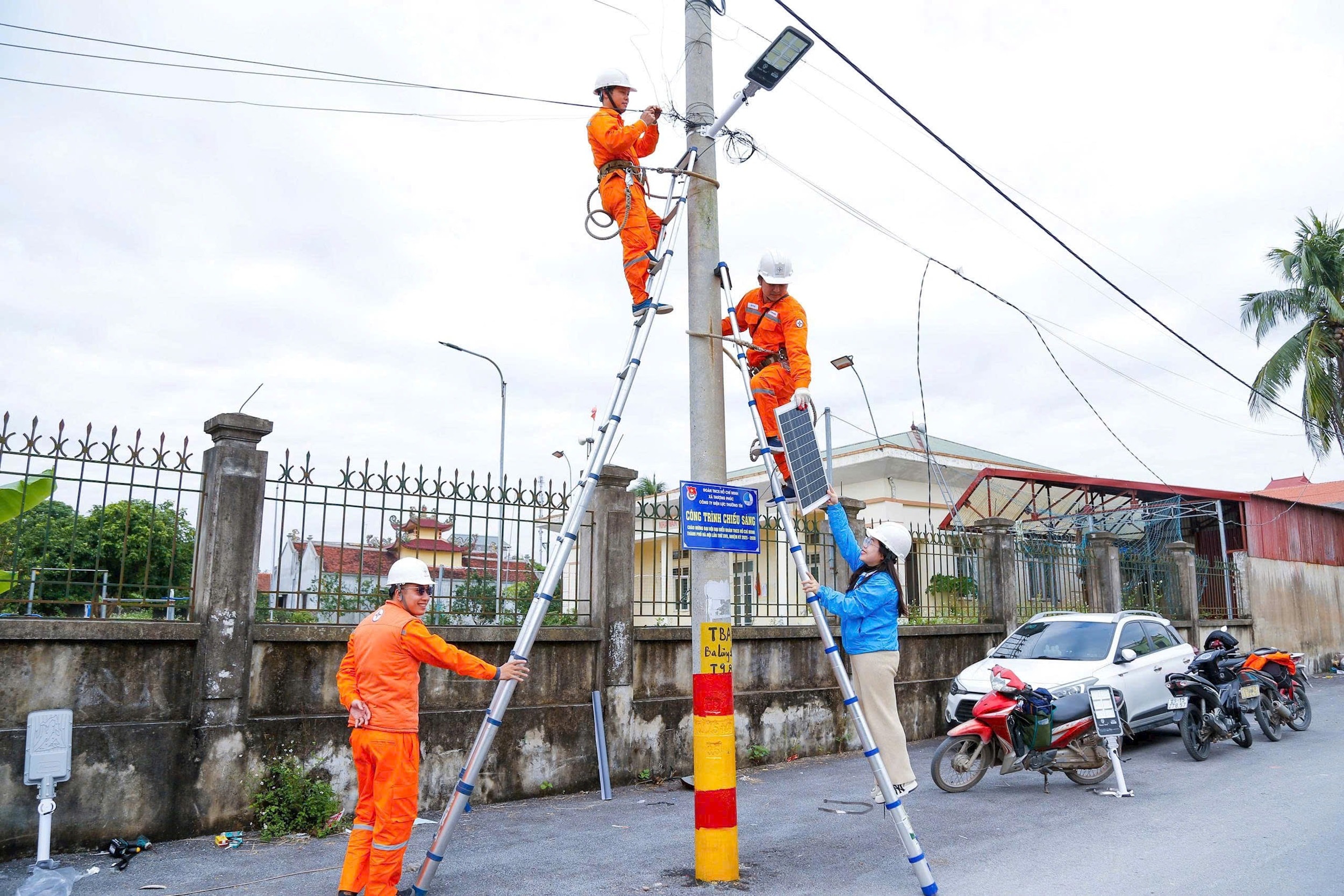 Đoàn Thanh niên xã Thượng Phúc phối hợp triển khai công trình “Tuyến đường chiếu sáng bằng năng lượng mặt trời”