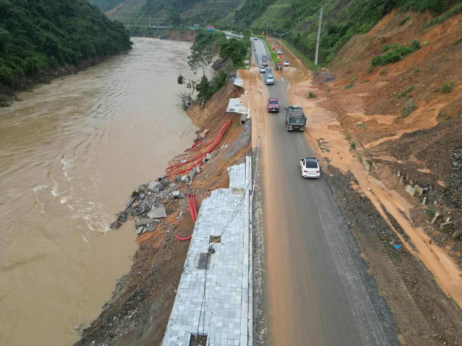 Đoạn tuyến quốc lộ 2 qua phường Hà Giang 1 bị sạt lở do bão số 10 và 11 gây ảnh hưởng đến lưu thông qua khu vực. Ảnh: Internet