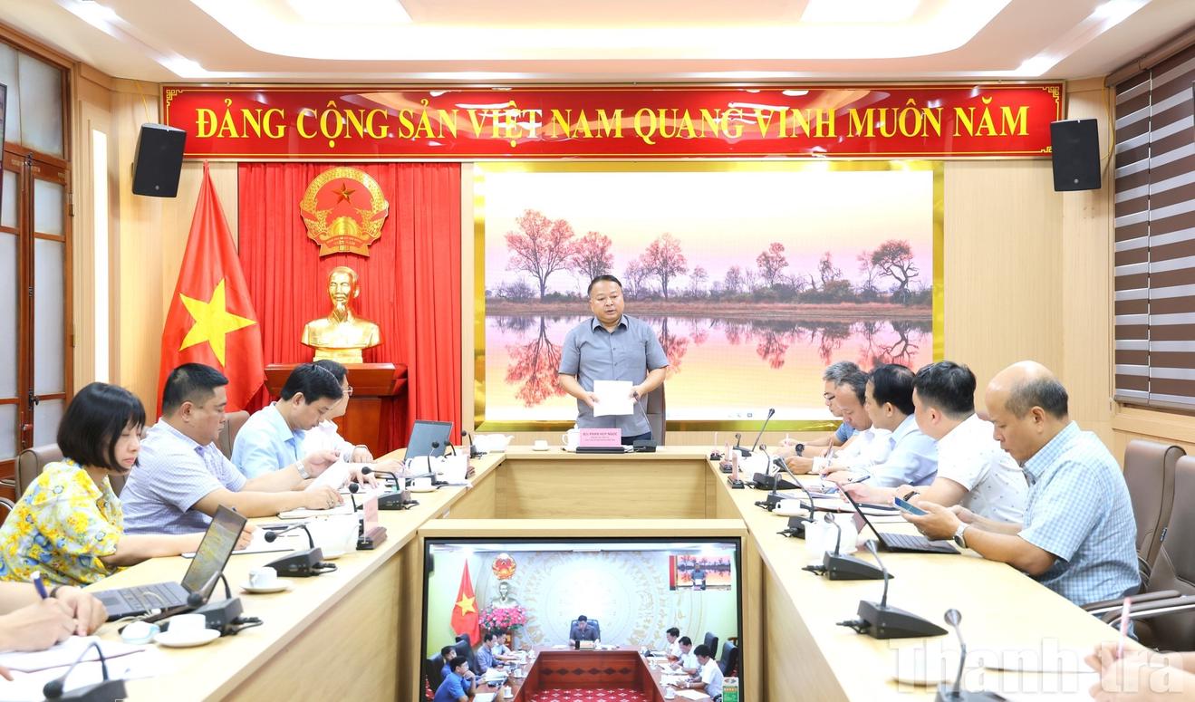 Chủ tịch UBND tỉnh Tuyên Quang Phan Huy Ngọc chủ trì cuộc họp trực tuyến tới điểm cầu phường Hà Giang 1 nghe báo cáo xử lý vi phạm do lấn chiếm và giải pháp khơi thông dòng chảy sông Lô. Ảnh: ND