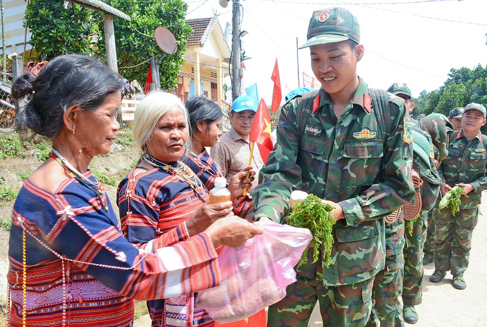 | Nhân dân xã Canh Liên (Vân Canh, Bình Định) lưu luyến chia tay bộ đội. |