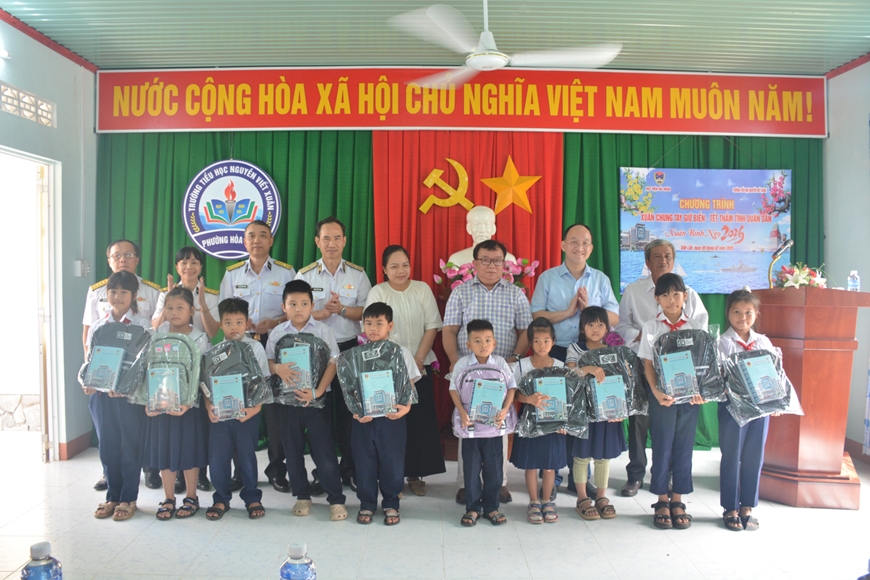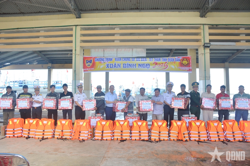 Tổng giá trị quà tặng trên 300 triệu đồng, gồm: 150 phần quà Tết, 150 thùng mì tôm, 200 bánh chưng, 100 cặp học sinh, 1.000 quyển vở; trao 200 lá cờ Tổ quốc và áo phao tặng ngư dân.